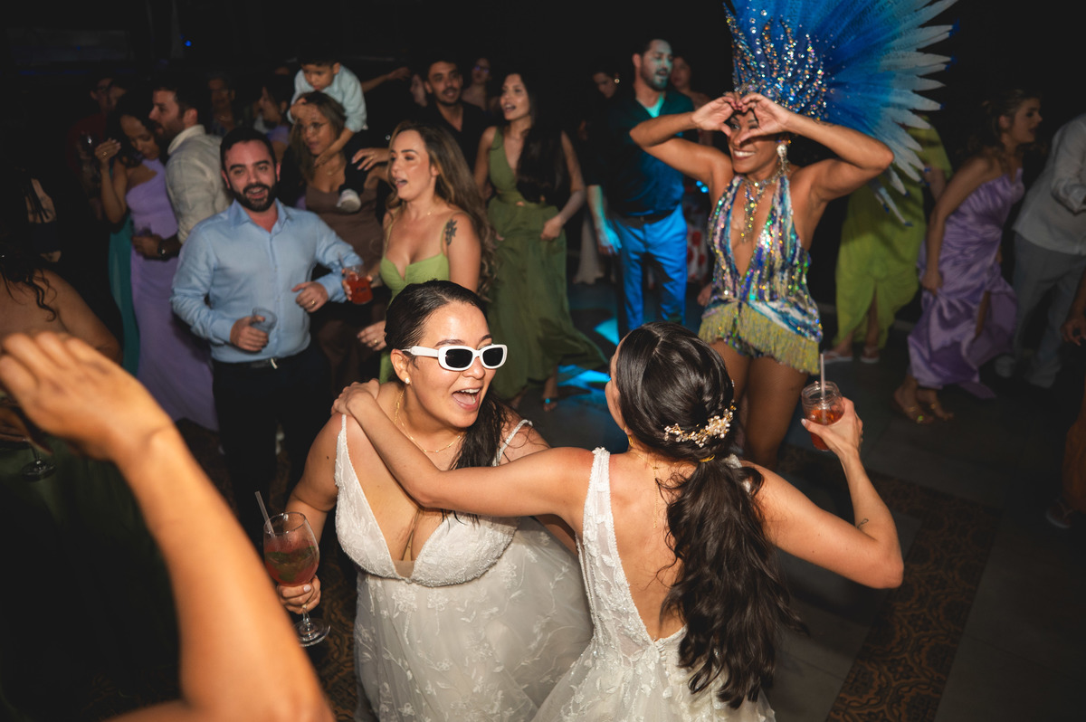 A cerimônia foi tão intensa e cheia de amor que até a celebrante se emocionou um pouco rs. E, para fechar a noite com chave de ouro, a festa foi pura animação, com uma escola de samba, que colocou todo mundo para dançar e a pista não caiu um só segundo.