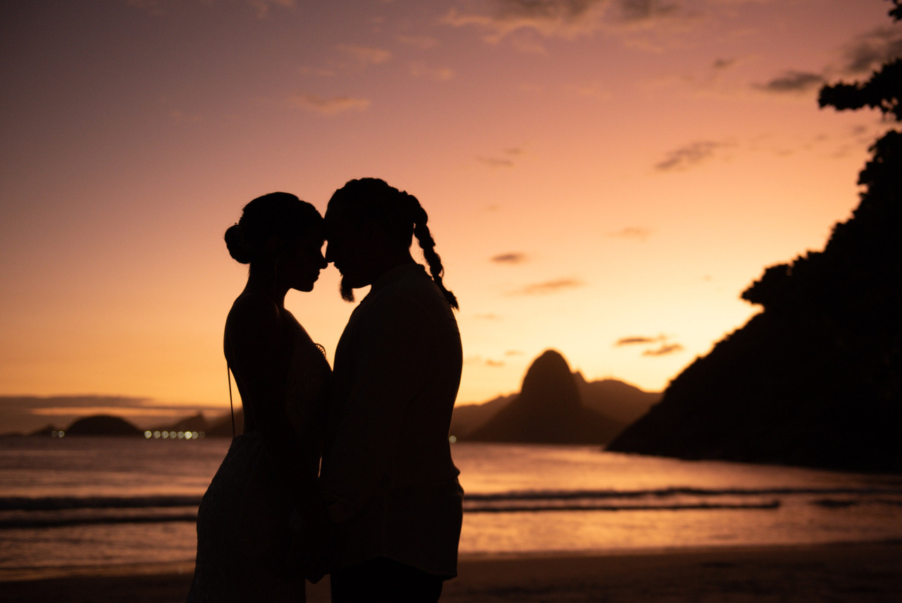 6 - Pôr do Sol Deslumbrante: O pôr do sol nas praias do Rio é espetacular, oferecendo uma luz dourada perfeita para fotos e um encerramento mágico para a cerimônia.